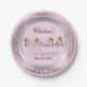 Assiettes En Carton Damassé rose et argentée avec le nounours