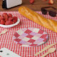 Assiettes En Carton damier valentine plaid rouge crème rose preppy