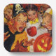 Un autocollant rétro d'Halloween qui montre une drôle d'image d'enfants du milieu du siècle en train de taper pour des pommes à une fête costumée d'Halloween. Un garçon regarde sa dent voler dans la pomme. "Ne laissez pas votre dent douce s'échapper de vous !"