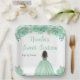 This sweet sixteen plate features faux glitter mint green floral flowers and a beautiful princess with dark skin and an elegant dress. This is perfect for a sweet sixteen birthday party.