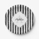 Assiettes En Carton Décontracté Black Peint Stripes Monogramme et nom