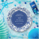 Cette belle et élégante serviette de mariage dispose d'un motif chinoiserie bleu antique. Le texte combine écriture manuscrite et polices serif pour un look élégant et moderne. Il est parfait pour un mariage de jardin de printemps ou d'été.
