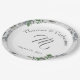 La dentelle blanche et le design Feuille Rose présente les noms de couple en élégant texte argenté, affichés comme une arche contre un support blanc. Arrière - plan présente l'image de dentelle blanche. Centre affiche l'initiale du nom de famille du couple. La date du mariage s'affiche ci-dessous. Les feuilles roses verts sont délicatement positionnés sur les bords.