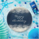 Un design élégant et abstrait avec de la dentelle crème et des perles faites de cercles et de bulles. L'arrière - plan est bleu foncé avec des carrés défraîchis sur le côté. Design joli et délicat. Joyeux anniversaire écrit dans une police de script sophistiquée.