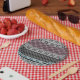 Assiettes En Carton Dentelle patchwork noir et blanc