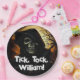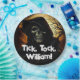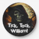 La faucheuse grise avec son visage squelettique et un arrière - plan menaçant compose ce dessin effrayant qui dit, "Tick, tock, name."