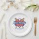 Cette assiette en carton est l'ajout parfait à un barbecue de baseball ou une fête de tailgating «Dernier Tour de Swing Avant l'Anneau». Ajoutez le nom et le lieu de votre événement en bas, ainsi que l'année ou le numéro de votre choix dans le logo.