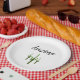 Plaque de papier du sud-ouest du désert, avec un motif de cactus saguaro vert sur un arrière - plan blanc. Avec des lettres typographiques personnalisables en noir, vous pouvez ajouter votre propre texte. Idéal pour ajouter une touche d'Arizona à vos accessoires de fête.