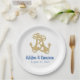 Assiettes En Carton Deux Ancres d'or Plaque Mariage nautique