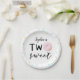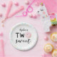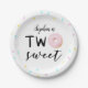 Plaque de papier pour la fête d'anniversaire à thème beigne mignonne avec des arroses et un texte typographique qui dit "deux douceurs" avec un beignet vitré rose et blanc au milieu. Customisez ce produit en ajoutant le nom de votre enfant. Idéal pour le deuxième anniversaire d'une fille.
