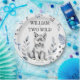 Deux loups sauvages thème fête d'anniversaire vaisselle personnalisées assiettes de fête, mignon loup gris moelleux couchette quelques feuilles de forêt pour une fête d'anniversaire loup bois
