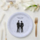 Une élégante plaque mariage classique avec deux toiletteurs. Les silhouettes donnent une atmosphère romantique à cette belle assiette. Cette scène minimaliste est parfaite pour votre mariage romantique moderne. Ce regard se déroulera bien à toute saison mariage, printemps, été, automne ou hiver. Idéal pour un mariage moderne, parfait pour un mariage classique !