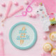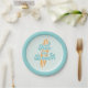 Deux la Plage ! Plage de surf 2ème anniversaire assiettes de fête avec vagues turquoise et plateau de surf orange.
