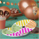 Décorez une fête d'anniversaire ou un pique-nique d'été avec ces plaques en papier amusantes avec des rayures géométriques colorées. Ce design minimaliste et moderne se mêle sans effort à une variété de thèmes et séduit les personnes de tous âges.