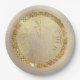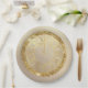 Cette assiette de fête présente un design d'horloge glamour. Une horloge avec l'heure à presque minuit est imprimée dans une fausse feuille d'or. La frontière comporte un cadre de diamants or motif. Il est parfait pour une fête à thème de conte de Cendrillon, ou une fête de la veille du Nouvel An.
