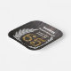 Elégante plaque d'anniversaire de mariage avec un motif de laurier en diamant et un numéro de nugget en or. L'arrière - plan est en bois marron foncé rustique. Vous pouvez modifier la police et la couleur du texte à l'aide des outils Zazzle.