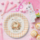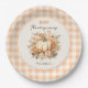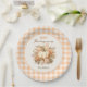 Thanksgiving Dinner Paper Plates dans le style élégant de la ferme moderne, avec des citrouilles floraux et en vichy en orange doux, crème et vert sur l'arrière - plan crème. Personnalisez facilement le texte. - Kate Eden Art