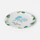 Drôle dinosaure 3ème anniversaire plaque papier de fête avec l'aquarelle bleue tyrannosaurus rex et feuilles verts. Personnalisez-le avec les détails de votre événement. Idéal pour une fête anniversaire préhistorique.