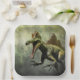 Ces plaques en papier ont un dinosaure effrayant sur elles.