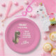 Dino thème fête d'anniversaire plaque de papier facilement personnalisée avec vos propres détails. La couleur Arrière - plan peut être modifiée.