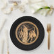 Ensemble de huit plaques en papier de 9" avec une image noire et or de Dionysos, dieu grec de la vinification et de la folie rituelle, et les satyres.
