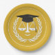 Plaques de la grande fête de l'école de droit unique avec des échelles de justice créatives personnifiées en noir et or bouchon de graduation.