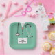 Félicitations pour le diplôme de docteur créatif pour la faculté de médecine. Modifiez le texte pour ajouter le nom du médecin. L'illustration sur le thème médical, facile à customiser, présente des gommages à l'hôpital et un couteau suisse dans la poche.