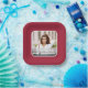 Ajoutez votre photo préférée à ces plaques de papier rouge pourpre carré de graduation avec votre nom, année de classe et le mot diplômé en lettres chic sur un arrière - plan bleu. PLUS de designs et de couleurs réalisés dans notre collection.
