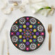 Plaque de papier mandala en mandala noir, jaune, bleu et violet.