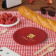Assiettes En Carton Double bonheur arrière - plan floral mariage chino