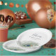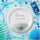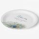Une correspondance parfaite avec notre gamme de shower de mariage Watercolor Peacock Feather, ces assiettes en papier élégantes sont une touche finale charmante. Le design présente un seul plumage de paon aquarelle avec votre texte personnalisé -- nom de l'invité d'honneur, type d'événement et date -- en lettrage bleu de minuit et indigo coordonné.