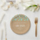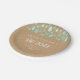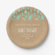 Avec de mignonnes gouttes de pluie vert menthe sur un fond kraft rustique bohème tombant vers vos détails personnalisés sur cette fête de bébé neutre, saupoudrer ou couples shower assiette en papier. Conçu par Thisisnotme©