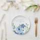 Assiettes en Papier Personnalisées Douce Mariage Fleurie Aquarelle Bleu Clair