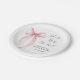 Élégantes assiettes en papier pour la douche de la mariée avec une aquarelle élégante d'un nœud coquet rose clair, "Elle va se marier" dans un script calligraphique, et le nom de la mariée et la date de la douche dans une écriture moderne simple.