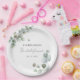 Assiettes en papier pour douche de mariée avec feuilles d'eucalyptus que vous pouvez facilement éditer pour votre fête et vos célébrations