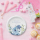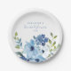 Assiettes en papier personnalisées de mariage floral aquarelle bleu clair chic
