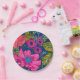 Cette douche à nuptiale fleurie et botanique PAPER PLATES présente des fleurs d'aquarelle rose, violet et couleur pêche et des feuilles dans les tons clairs de vert avec rose chaud en arrière - plan.Une invitation parfaite à la douche à nuptiale fleurie colorée.