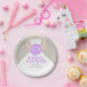 Elégante robe nuptiale avec poitrine de violet stylisé rose floral et gris coeur pluie nuptiale plaque jetable papier douche nuptiale. Éditez ces plaques avec votre propre mariée honorifique pour être le nom d'être. Idéal pour une douche nuptiale et correspond à l'ensemble d'arrêt de mariage bouquet. Design unique et art graphique de Sarah Trett.