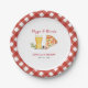 Décontracté et amusant "Pizza and Brew." Couples plaques de papier douche avec aquarelle peinte à la main Pizza et bière avec bordure en vichy rouge et blanc. Parfait pour jardin décontracté fiançailles ou douche d'été.
