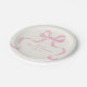 Célébrez avec style avec ces assiettes en papier pour la douche de la mariée inspirées de l'époque, avec un cadre ovale dessiné à la main rose pâle et un nœud.
