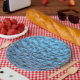 Assiettes En Carton Doux gouttes de pluie sur verre bleu