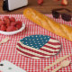 Un drapeau américain rustique orne cette assiette de papier festive.