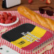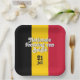 Célébrez la fête nationale belge avec ces plaques en papier audacieuses et lumineuses du 21 juillet, qui présentent les trois couleurs du drapeau national belge et "Nationale feestdag van België" en élégante lettrage blanc. Design © W.H. Sim. Voir plus sur zazzle.com/expressionsoccasions