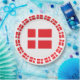 Le drapeau danois. Les petits autour du bord et grands au centre.