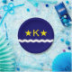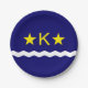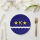 Plaque en papier avec design avec drapeau de Kinshasa, capitale de la République Démocratique du Congo, drapeau bleu avec vague blanche, deux étoiles dorées et lettre "K" au centre
