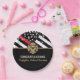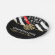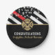 Cette conception de plaque de pompier présente un drapeau de pompiers avec des bandes noires et blanches et une fine bande rouge également. "Félicitations" et un badge de pompier sont situés au-dessus du nom du pompier diplômé. Cette conception fonctionne également très bien pour les pompiers à la retraite, les lieutenants ou les chefs. Célébrez avec style !