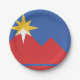 Plaque en papier avec un design avec le drapeau de Pocatello, Idaho. Un drapeau bleu avec des montagnes rouges et une étoile jaune