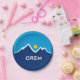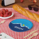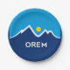 Plaque en papier avec un design avec le drapeau d'Orem, Utah. Un drapeau bleu, blanc et jaune avec des sommets de montagne et le soleil au centre
