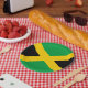 Le drapeau de la Jamaïque dans les couleurs de partisan du panafricanisme de jaune, de noir, et le vert. Verdissez pour la terre, noircissez pour la force des personnes, et le jaune pour le soleil.