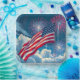 Assiettes En Carton Drapeau patriotique américain avec feux d'artifice